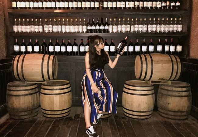 Góc chụp: Khu vực các hốc rượu trữ dọc lối đi, quầy bar bằng gỗ sồi hay các kệ trưng bày rượu lâu năm là những bối cảnh “vàng” cho những khung hình chất lừ.