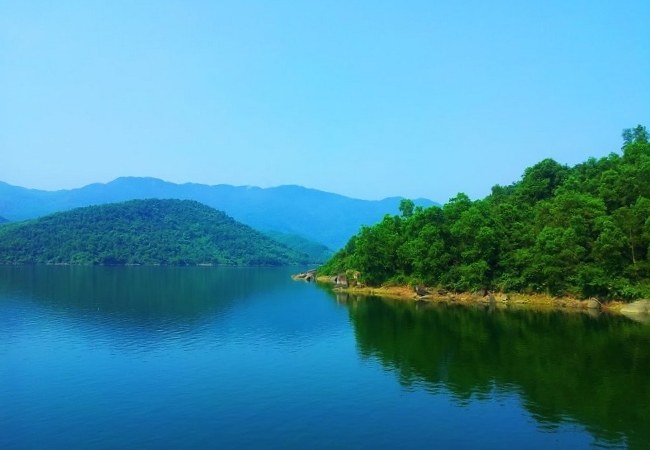 Khi đến nơi, bạn sẽ bắt gặp một con đập ngăn nước khá dài và lớn. Bên cạnh con đập chính là khu vực hồ nước rộng lớn mà bạn đang tìm kiếm.