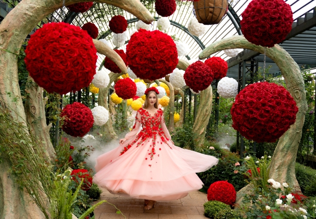 Le Jardin d’Amour với triệu bông hoa khoe sắc. Hướng dương vàng, cẩm tú cầu xanh tím, hồng đỏ thắm. Đây là bối cảnh chụp ảnh tuyệt đẹp khi tham gia lễ hội Carnival Bà Nà. Trang phục lộng lẫy giữa vườn hoa rực rỡ.
