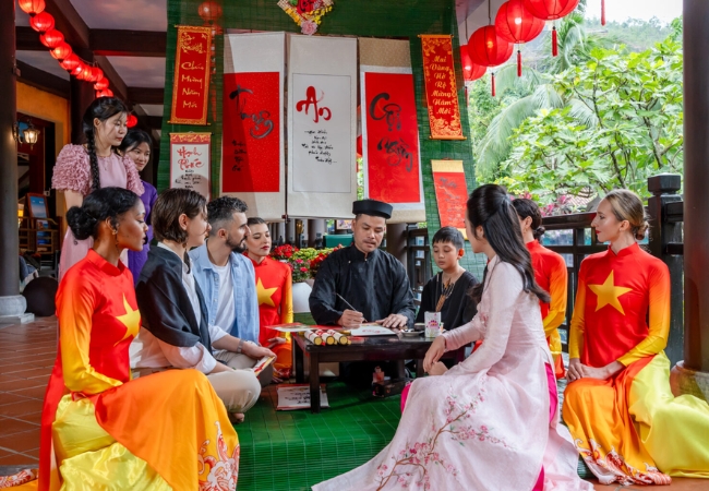 Xin chữ đầu năm từ các ông đồ viết thư pháp. Viết lời ước trên giấy đỏ treo lên cây mai. Chơi các trò dân gian như bịt mắt bắt dê, đi cà kheo, ném còn.