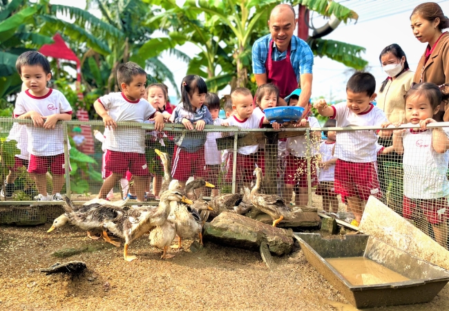 Vườn rau cho bé học cách trồng và chăm sóc cây. Vườn thú mini với nhiều loài động vật thân thiện như thỏ, gà, vịt, dê để bé quan sát và tương tác.
