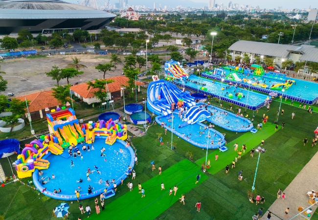 Đây là khu vui chơi trẻ em ở Đà Nẵng thường xuyên tổ chức các chương trình lễ hội vui nhộn. Không gian đa sắc màu giúp bé thư giãn sau những giờ học tập căng thẳng.