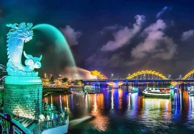 Không thể nhắc đến du lịch Đà Nẵng 2025 mà không kể về các cây cầu nổi tiếng. Cầu Rồng là biểu tượng của thành phố với khả năng phun lửa và nước như thật. Mỗi tối thứ sáu, thứ bảy và chủ nhật lúc 21 giờ, cầu Rồng biểu diễn phun lửa và nước, tạo nên cảnh tượng ngoạn mục thu hút hàng ngàn người xem.