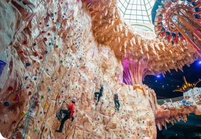 Leo núi mạo hiểm (Climbing Wall): Bức tường leo cao 10 mét với nhiều cấp độ khó khác nhau, là nơi để bạn thử thách sức bền, sự khéo léo và quyết tâm chinh phục.