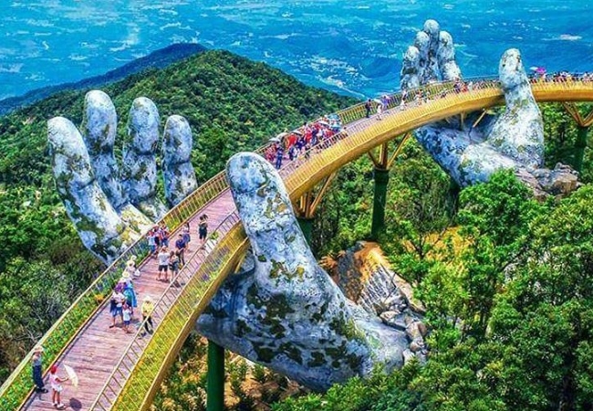 Cầu Vàng với đôi bàn tay khổng lồ nâng đỡ là biểu tượng nổi tiếng, điểm chụp ảnh được yêu thích nhất. Kiến trúc độc đáo này đã làm say đắm biết bao du khách.